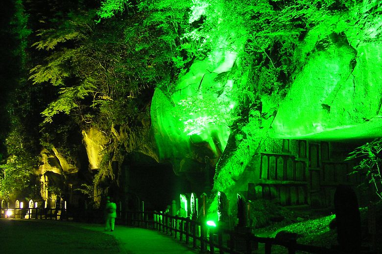 | 五大堂 | 瑞巌寺の中に入ると、洞窟群がライトアップされています |