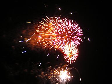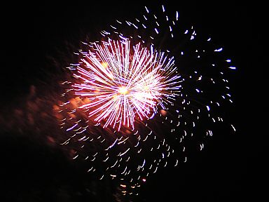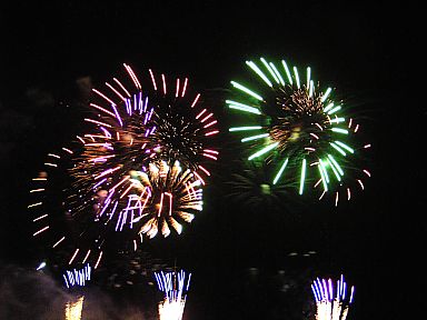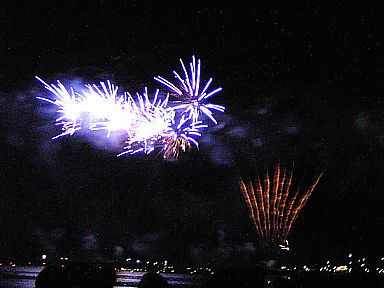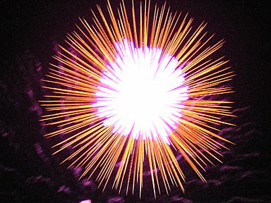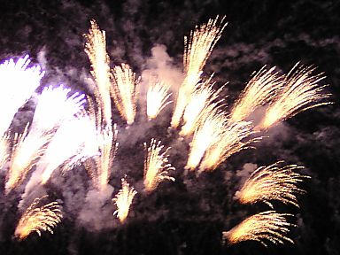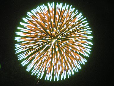 | 日本三景・松島では毎年8月15日に花火大会が開催されます。 海上から打ち上げられる花火大会は塩釜初め数箇所で開催されますが、規模と知名度、JRが二本走っている為仙台 からの交通の便の関係も有り人気が高いです。 デジカメによる撮影の処女作ともいえるもので皆さんにご覧頂くのは恥ずかしいのですが… かなりの数の「ゴミ箱入り」から残ったいくつかを展示します。 |
