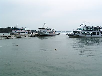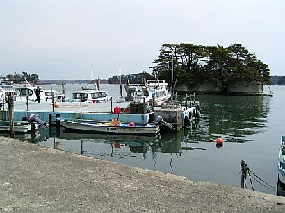 | 雄島から海岸線の遊歩道を中心地に向かう。 | 間も無く、小型遊覧船の船着場に出ます。 |