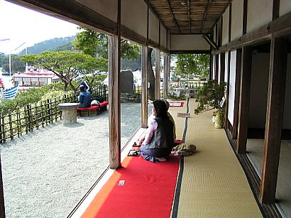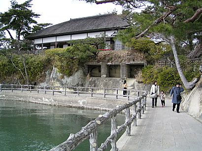 | 駅前の公園を越えると直ぐ『観瀾亭』が現れます。これは、伊達政宗が太閤秀吉から譲り受けた茶室です。 | |
