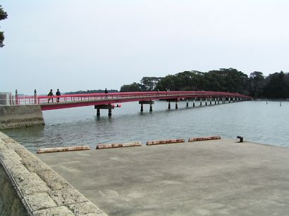 | 五大堂を過ぎ、海岸線を東に向かうと、赤い長い福浦橋を渡って福浦島に行くことが出来ます(有料)。 | |