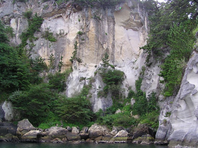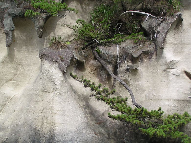 波と風雨にさらされる岩肌の何処に生育する場所があるのか?