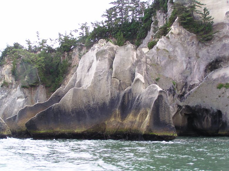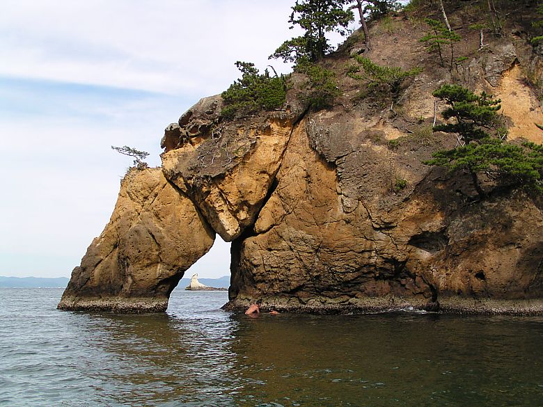 ここの岩肌だけ、色が違いまた違った印象を与えます。 象の鼻と雄姿に見えませんか?