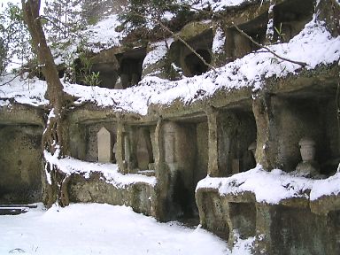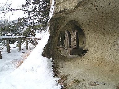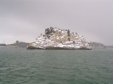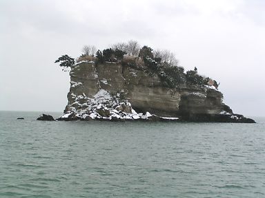 | 船を下りて、「雄島」に雪景色を求めてみました。昔僧侶が修行をした島で、往時の姿が偲ばれます。 | |