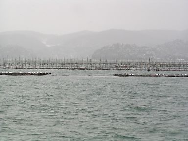 | 広島の牡蠣と並ぶ、松島牡蠣の養殖棚が並んでいます。 | |