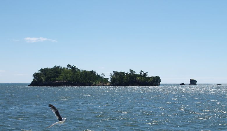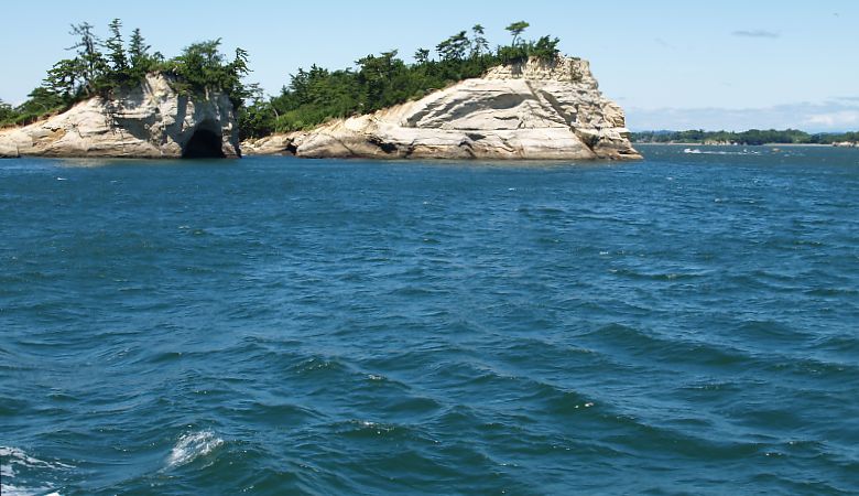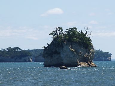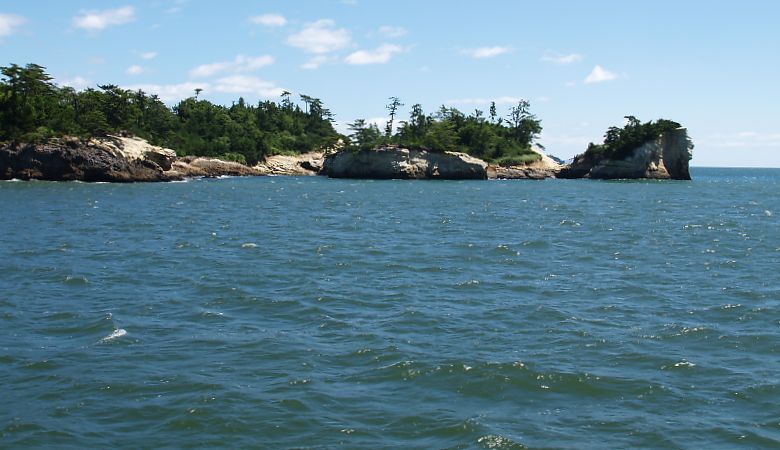 野々島の傍にある陰田島(かけた島)。"田"の名前が付くのは、今では侵食により離れ小島になってしまいました