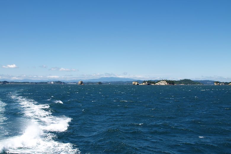 船入島を過ぎて暫らくして陸地を見ると、遠く栗駒山の山影も見えます。