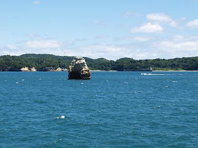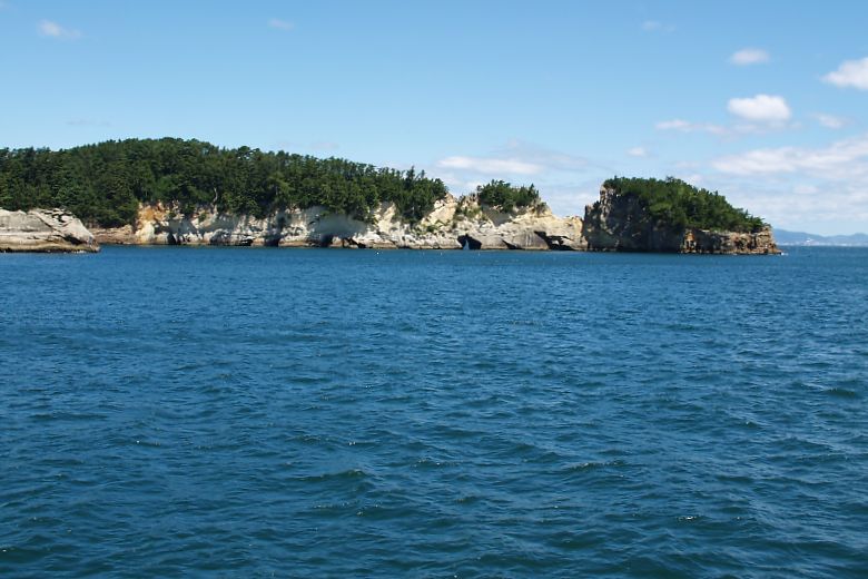 岬を東側に抜けるともう一つの岬があり、その先が嵯峨渓です。岩の景観が荒々しくなってきています。