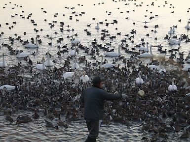 ■仙台市若林区大沼の白鳥2 餌付けの光景頁