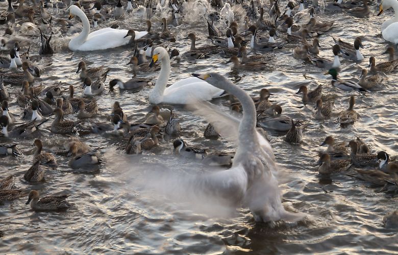 この頁では、白鳥の羽ばたきの光景をご覧いただきます。