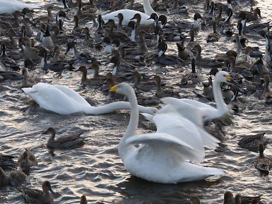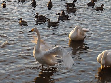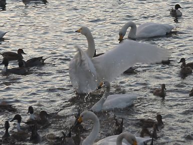 ■仙台市若林区大沼の白鳥5 羽ばたきの光景頁