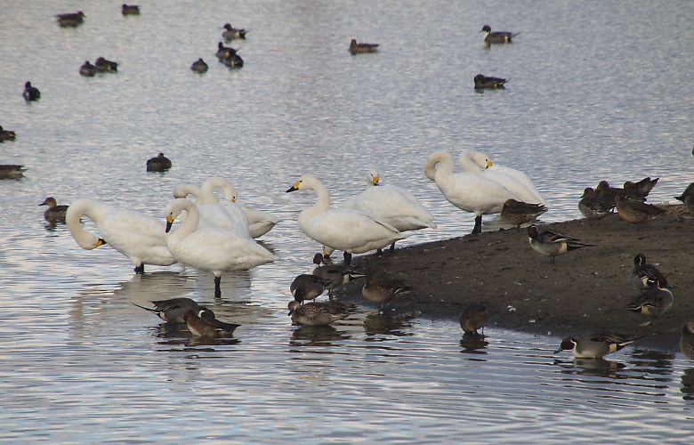 夜が明けて、そろそろ餌を啄ばみに近くの田圃へと 飛び立つ頃… 仙台市若林区・仙台市農業園芸センター隣の大沼を 訪ねて見ました。 (撮影:2007.12.30) |