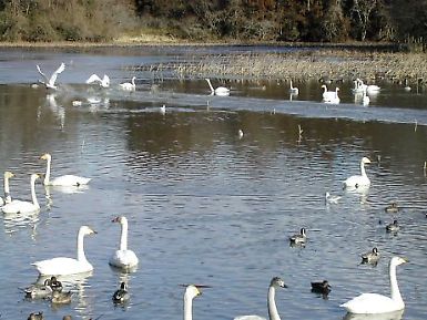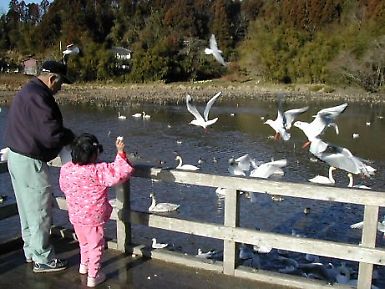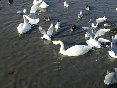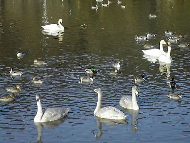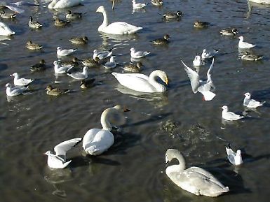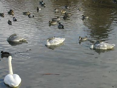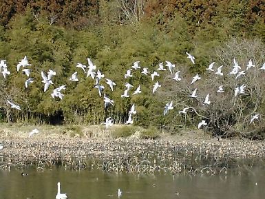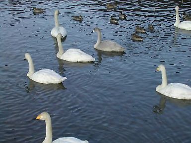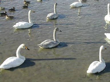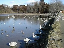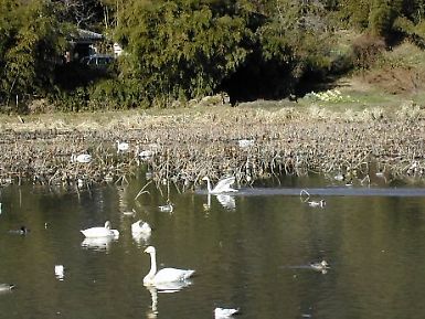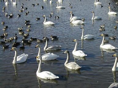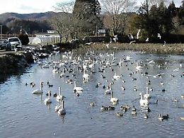 民家の直ぐ近くの沼に、これほどの鳥が飛来する。 宮城県北部の迫町・伊豆沼の白鳥ほど、餌付けがなされて