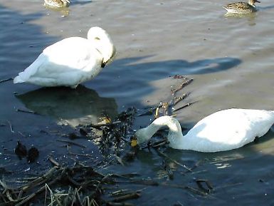 冒頭にも記載したが、蓮沼であり、水深は浅いようで水もにごっていた。白鳥の羽も少し煤けて見える。