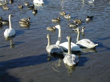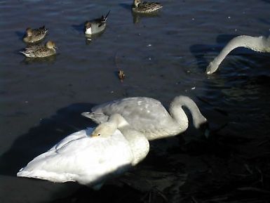 さぁさぁ、岸辺にご飯食べにいくよ! はぁ〜い。 |