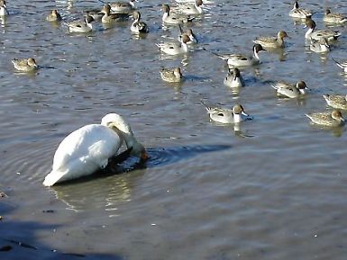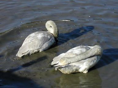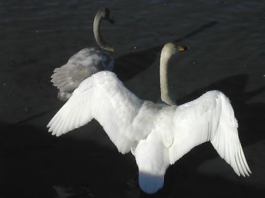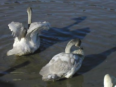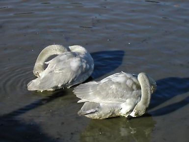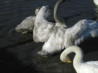 | ついでに、首もちゃんと磨いてっと。 | 後は、羽をばたばたさせて…。 |