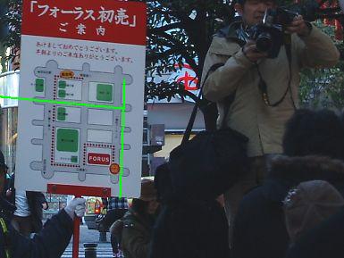 | 仙台初売りで一番長い列が出来るのはフォーラス。赤い点々最後尾は青葉通まで約1kmほど続いていました。 |