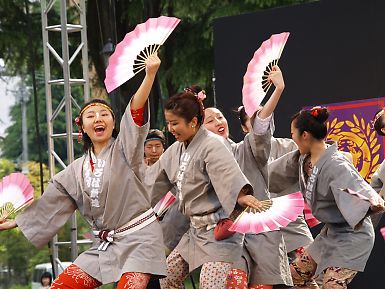 | 躍動的な踊りと扇子を使った踊りが特徴です。 | |