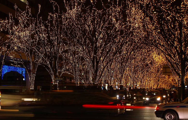 仙台駅前の青葉通りと、メイン会場・定禅寺通りのケヤキ並木に豆電球が灯されます。定禅寺通りは並木が四列で