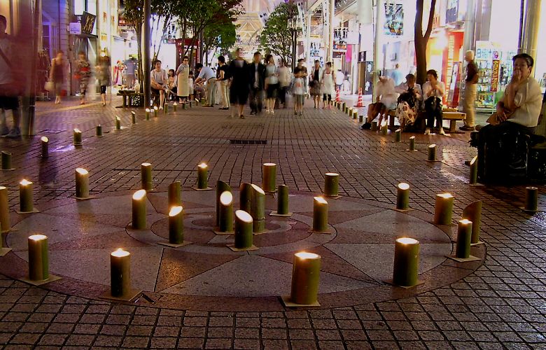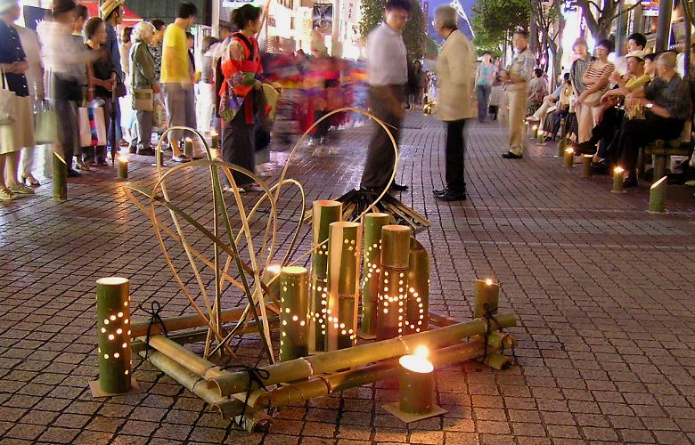 | 2006年8月13日、仙台市青葉区の一番町四丁目買い物公園 Map で『仙台竹灯り』が開催されました。 これは、仙台七夕で使用した竹を切って、ロウソクを灯し市民に楽しんで貰おうと言う一番町四丁目商店街の皆さんの企画です。 また、七夕で使った竹を『竹炭』にして市民に無料配布もしているようです。 今年で3回目になるこの祭、まだ市民の中にも浸透していないようで、私も今年初めて知りました。 |