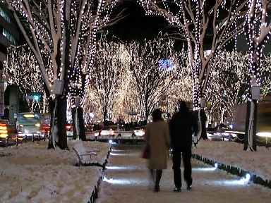 から、見ごたえがあります。この日、丁度昼頃から今シーズン初の降雪があった仙台。点灯される夕刻には止み