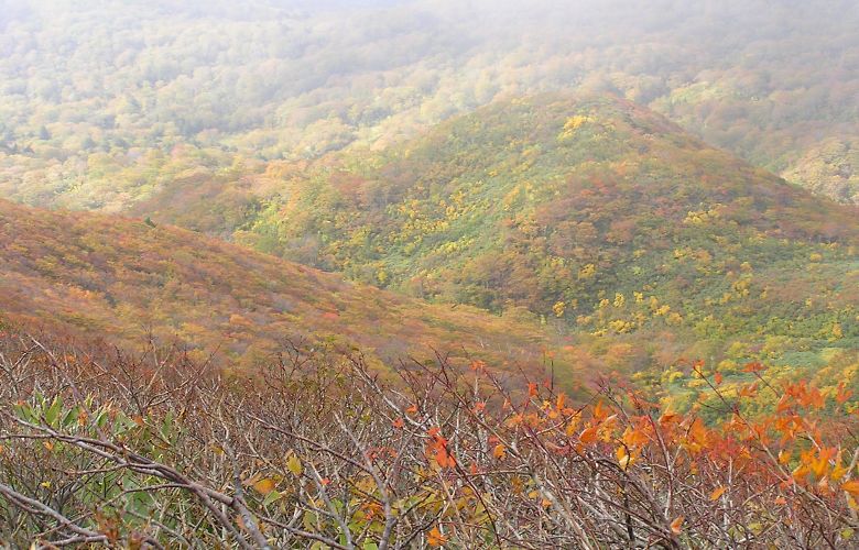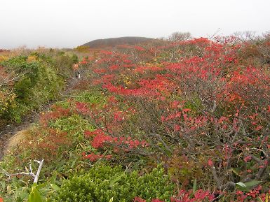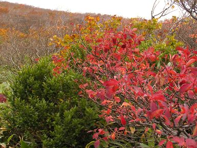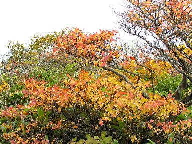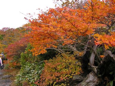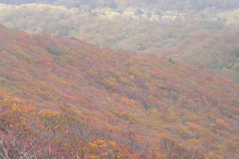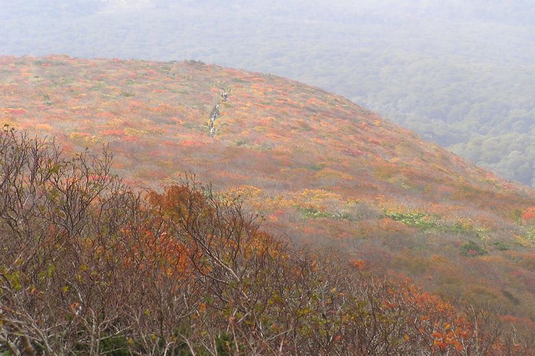 登って来た登山道を振り返ります。もうこの辺が紅葉の端なので、ここから下山しました。