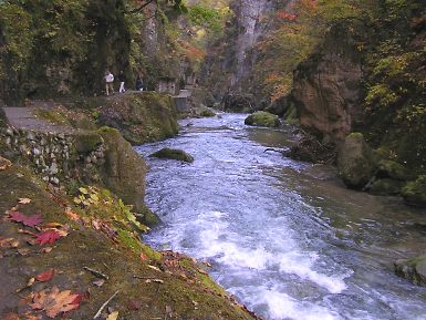 | 混雑を避けて早めに行ったつもりですが、もうツアー客も来ていまして渓谷を歩いていました。 | |