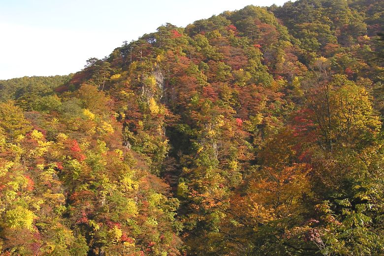 | 稜線の岩肌の錦織りなす紅葉 | |