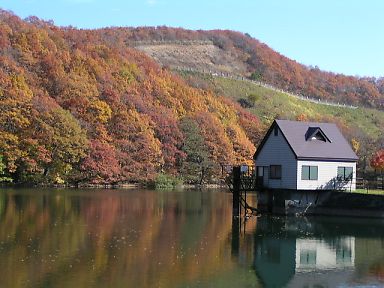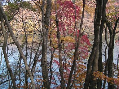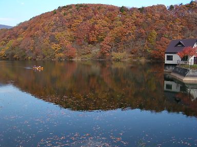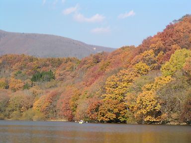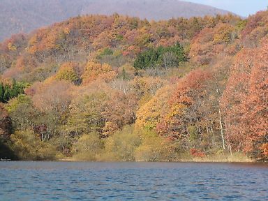 長老湖は、南蔵王・不忘山の山麓に有り南蔵王を縦走して来るとこの近くに下山します。湖はちょうど紅葉の見頃に