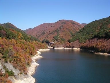 | 上流の、七ヶ宿ダムの風景と、ダムに入り込む川の風景。 | |