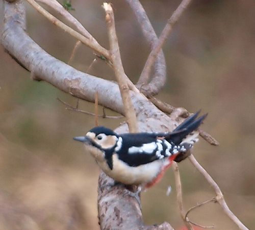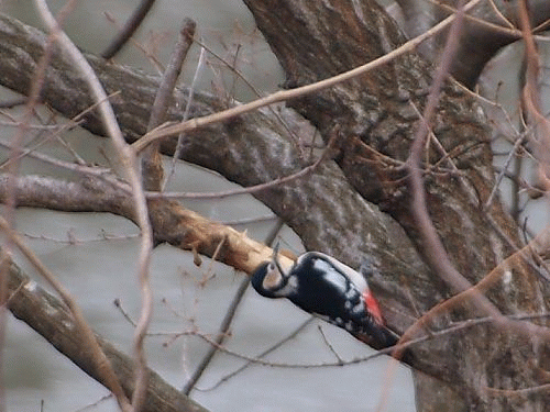 | キツツキ目 キツツキ科 大きさ: 23.5cm。ほぼムクドリ大のキツツキ 鳴声: キョッ、キョッ。。 特徴: 頭上から背にかけて黒く、白い班がある。 雄は、後頭部に赤い羽根があり、雌雄とも下腹が赤い。 生態: 北海道・本州では留鳥。西日本では少ない。 撮影: 2010.01.23 宮城県仙台市宮城野区鶴ヶ谷中央公園内 |
