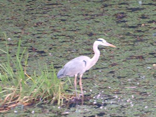 | コウノトリ目 サギ科 大きさ:93cm。大型のサギで鶴と間違われる。 特徴: 頭と頸(くび)は白く、頭側から後頭部に黒い線がある。 嘴は黄色で、羽は青灰色。 生態: 留鳥。元々はどこにいるのでしょう。 撮影: 2009.9.27 宮城県仙台市宮城野区鶴ヶ谷中央公園内 |