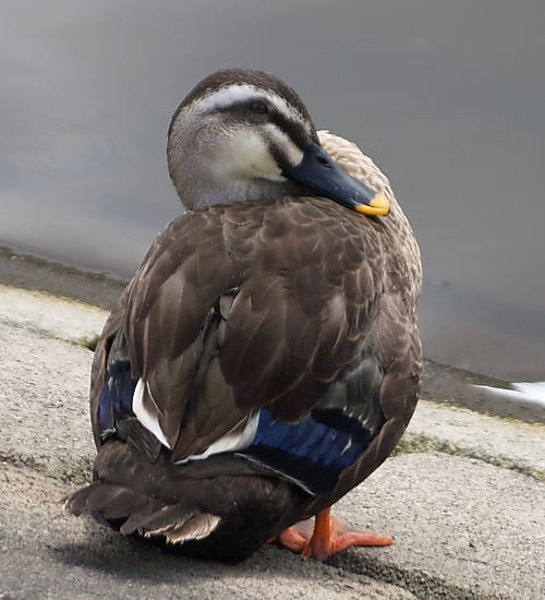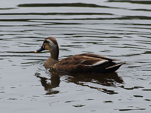 | ガンカモ目 ガンカモ科 カモ類 大きさ:60cm。 特徴:他のカモと違い雌雄同色。 嘴は黒く先端は橙黄色。頭が黒褐色で、過眼線、下嘴の付け根から 頬の線が黒褐色。 遠くから見ると眼の上と下に二条の灰色の線が入っているように見え る。 生態:留鳥。全国の低地や山地の水辺で繁殖。 撮影: 2009.6.28-9.5 宮城県仙台市宮城野区鶴ヶ谷中央公園内 |