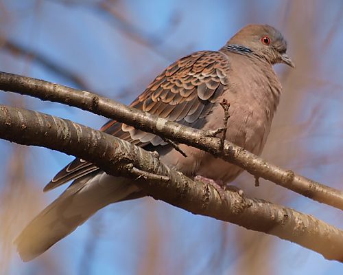 | ハト目 ハト科 大きさ:33cm。 鳴声:デデポッポー。 特徴:ヤマバトとも呼ばれる野生のハト。 体はブドウ灰褐色。羽の端は赤い。 生態:小笠原以北に分布。北海道のは夏鳥で、冬は暖地に移動。 撮影: 2009.12.06 宮城県仙台市宮城野区鶴ヶ谷中央公園内 |