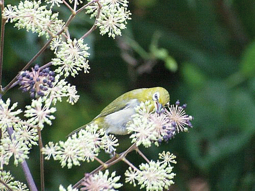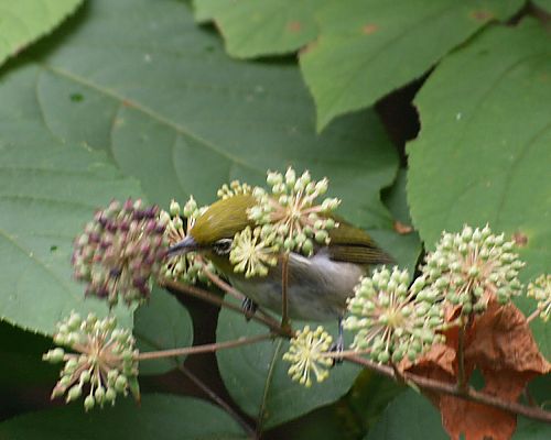 | ウドの実を食べるメジロです |