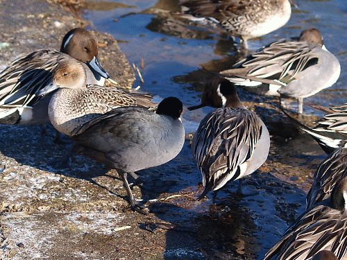 | 撮影: 2014.2.1 鶴ケ谷中央公園にて 2・3年前から、飛来するようになりました。潜りの瞬間をGIFアニメで。 |