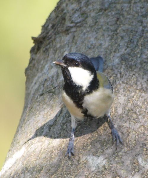 | スズメ目 シジュウカラ科 大きさ:14.5cm。スズメと同じ大さ。 鳴声:ツツピー。地鳴きはシーシー、ジュクジュクなど。 特徴: 幼鳥の頬は灰色っぽくまだはっきりと白くは無い。 首から腹にかけネクタイのような黒い縦線がある。 雌雄の見分け方は、♂は太い。 ♀は細い。 胸毛の上のほうは少し薄緑色をしている。 肩は黄緑色。 生態:留鳥として全国に生息。 撮影: 2009.9.13 宮城県仙台市宮城野区鶴ヶ谷中央公園近くの団地内 |