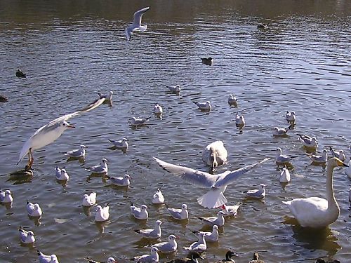 | チドリ目 カモメ科 カモメ類 大きさ:40cm。小型カモメの基本形。 特徴:背と翼上面が青灰色、嘴と足は赤い。 生態:冬鳥として飛来し、白鳥の周りにいる。 撮影: 2005.12.31 宮城県仙台市宮城野区鶴ヶ谷中央公園内 |