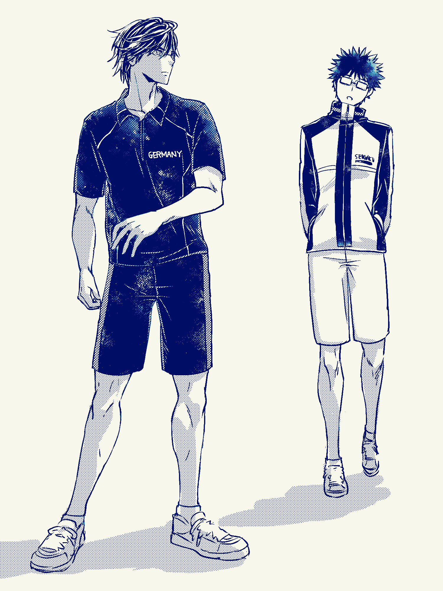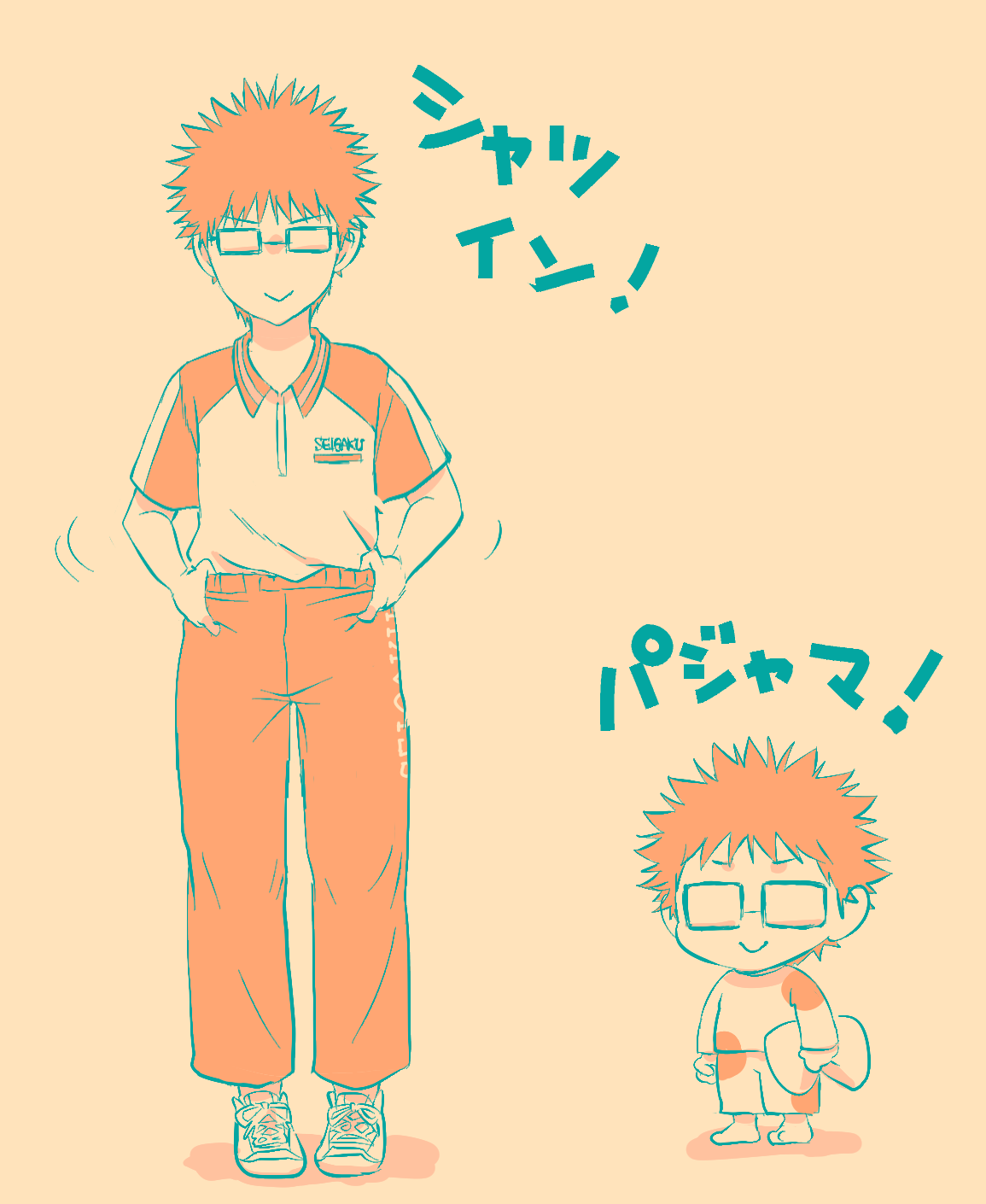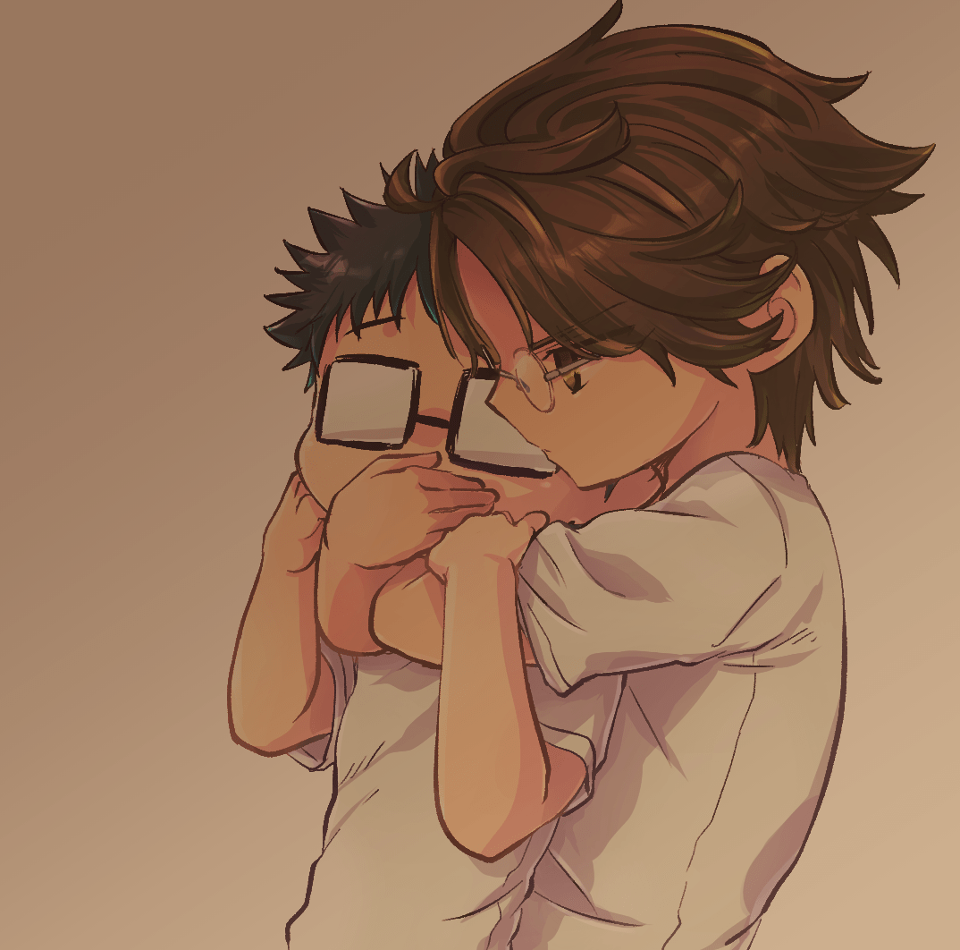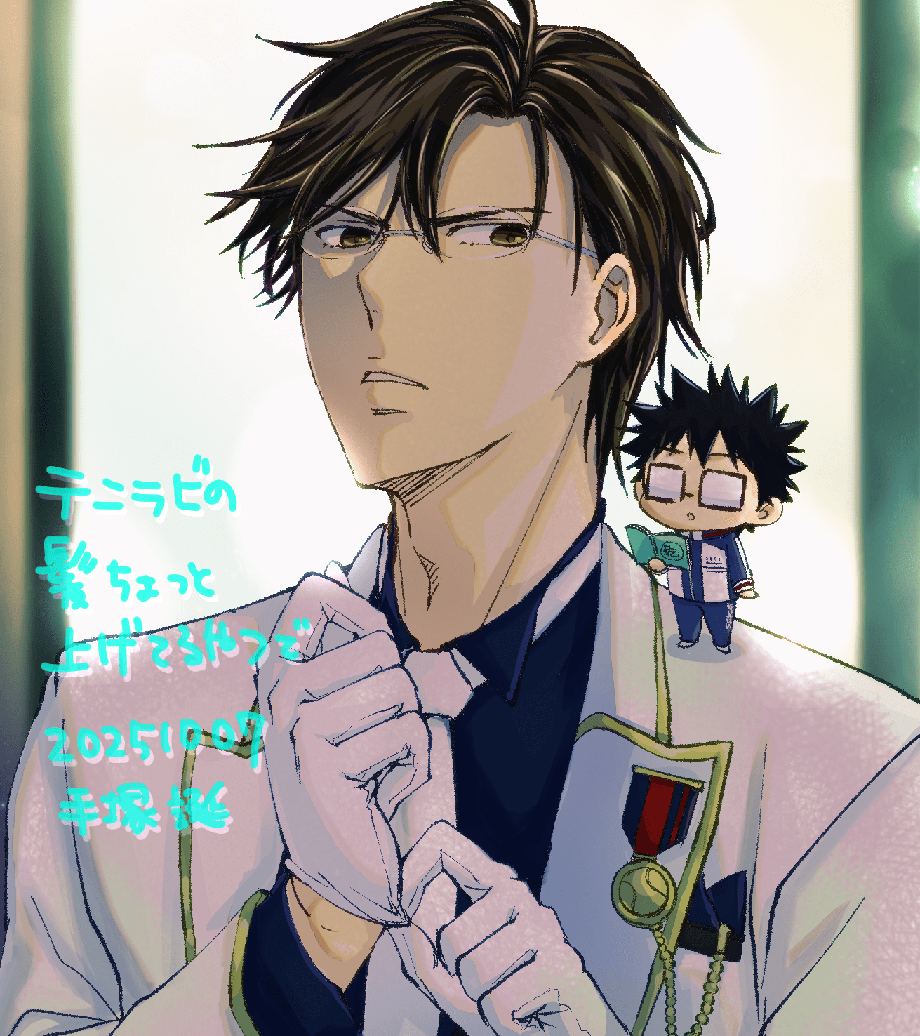 元は原作絵をイメージしながら手塚の髪色を黒めにしたんだけど、最後に加工をかけたら何の因果か普通にアニメ風の茶髪になったんだ!!(*^◯^*)くそう…っ!!(でもこれはこれでアリかと思うので使うんだ!!(*^◯^*))