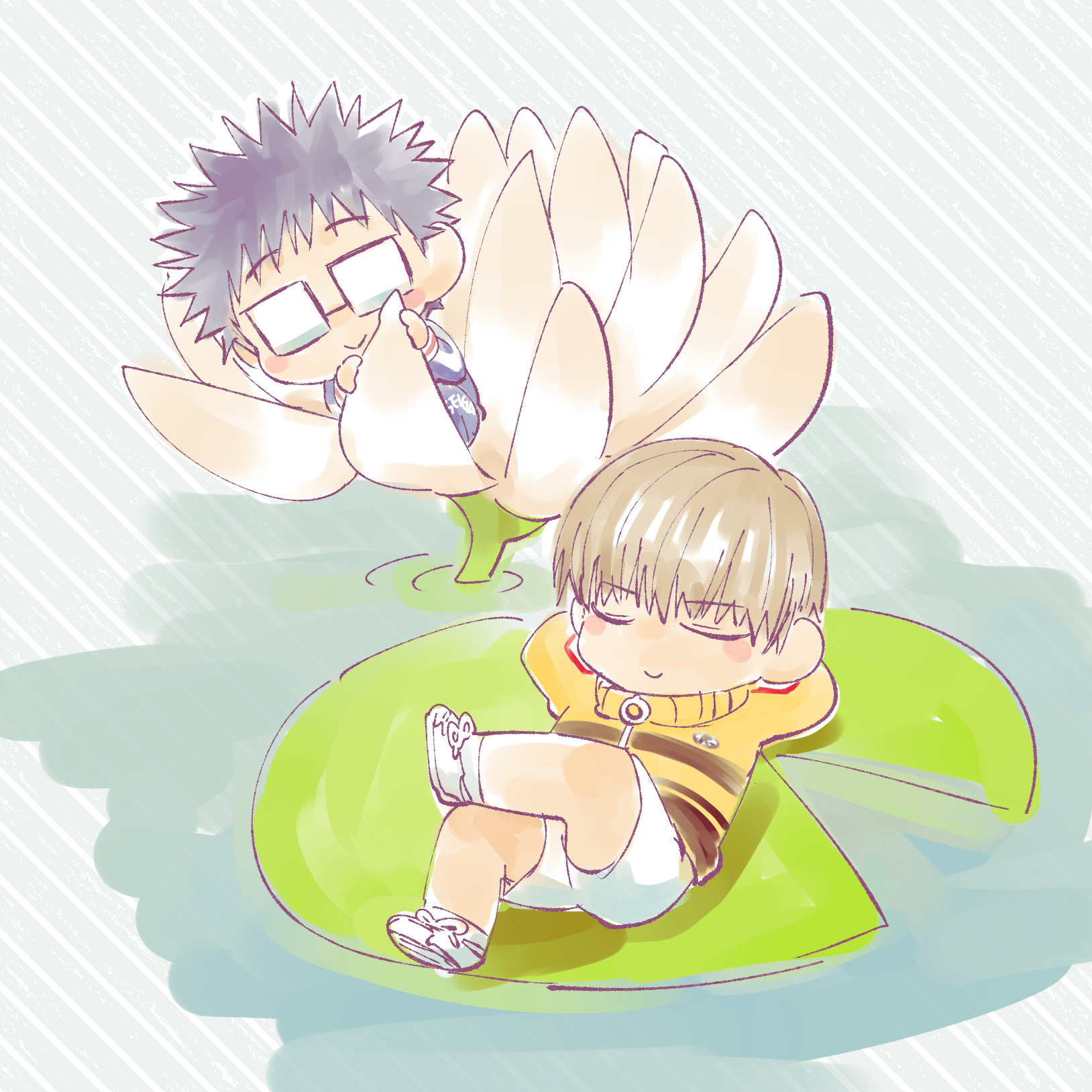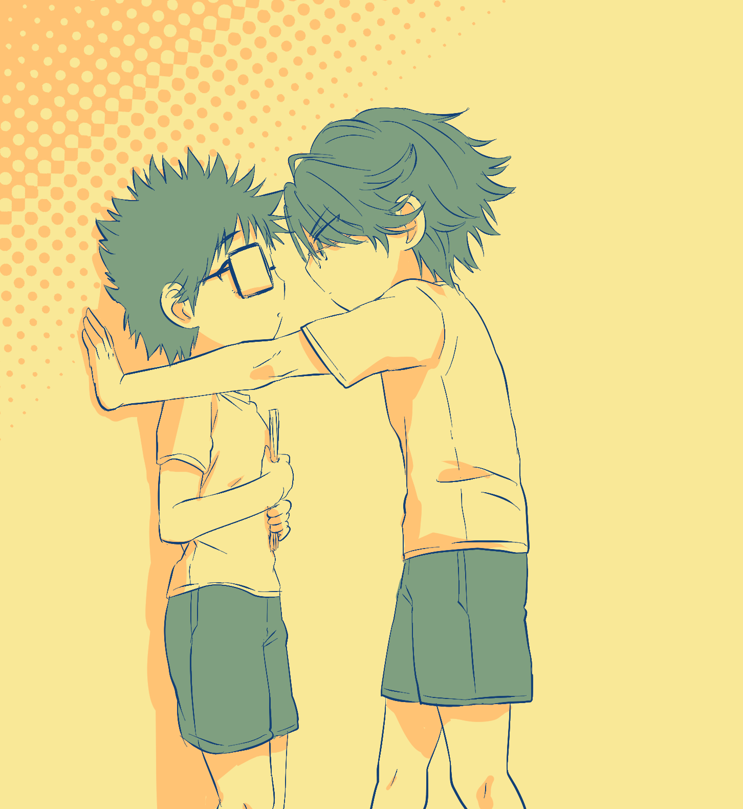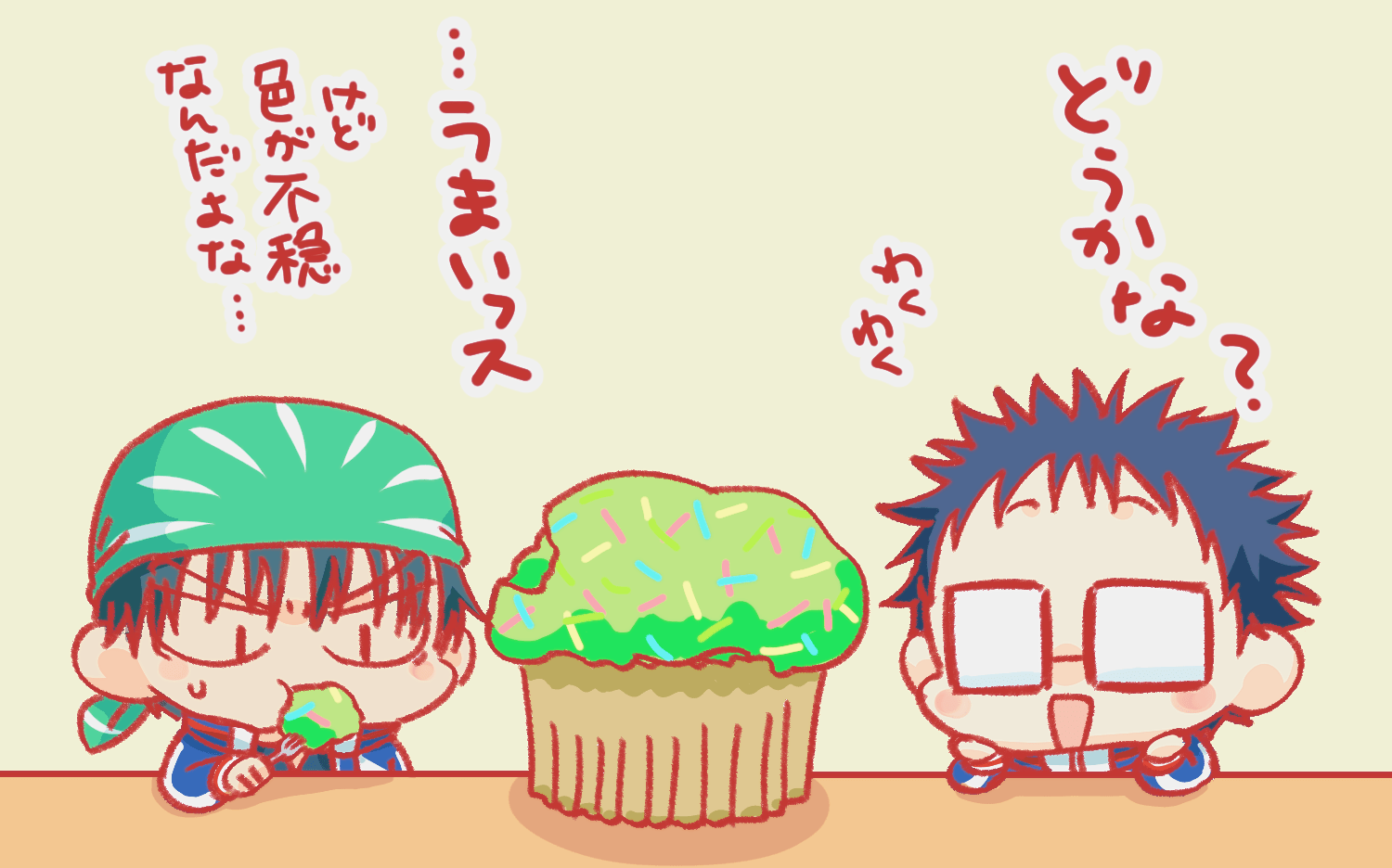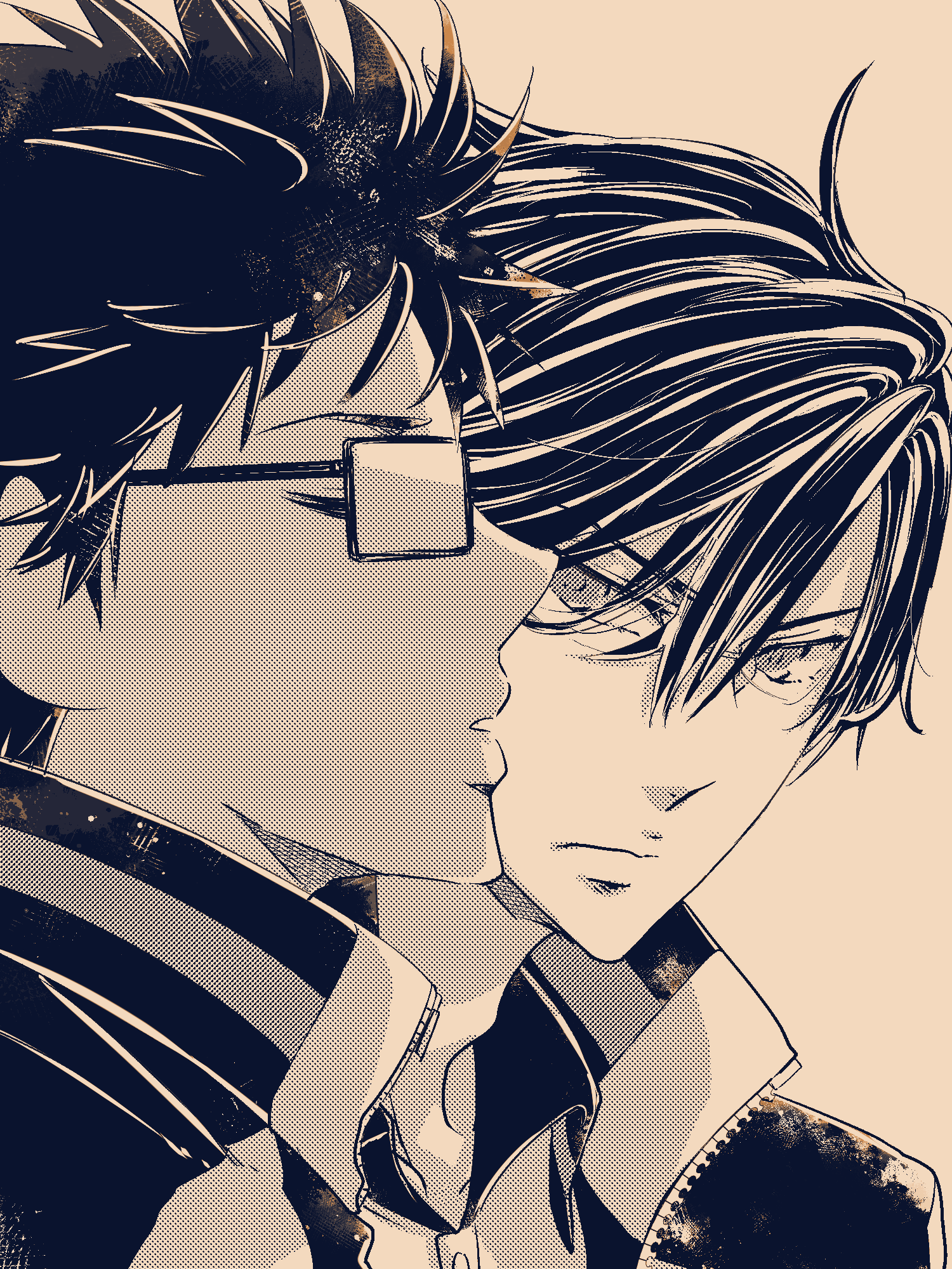 元は原作絵をイメージしながら手塚の髪色を黒めにしたんだけど、最後に加工をかけたら何の因果か普通にアニメ風の茶髪になったんだ!!(*^◯^*)くそう…っ!!(でもこれはこれでアリかと思うので使うんだ!!(*^◯^*))