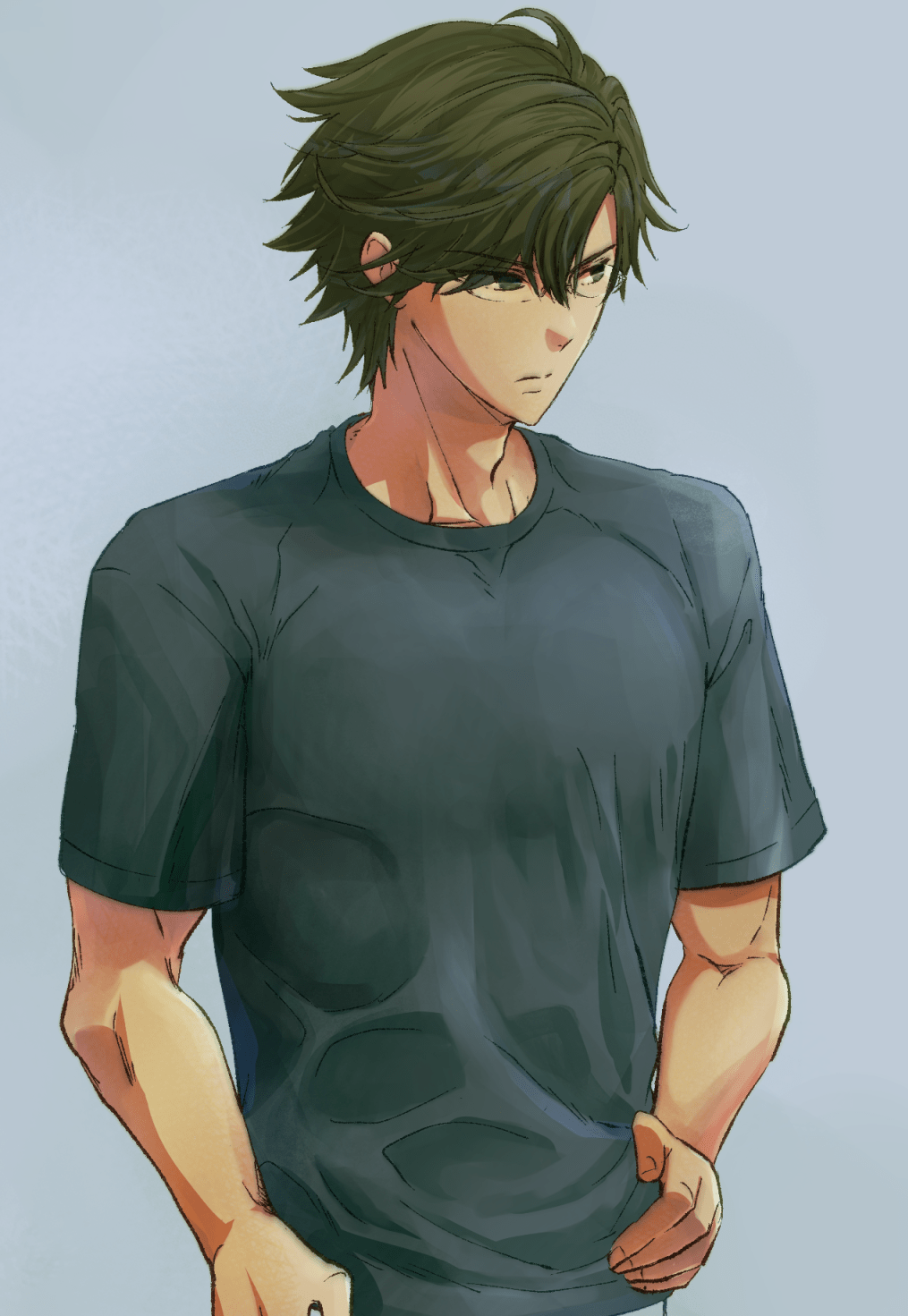 質の良いTシャツは生地感ちょっと厚めで皺が少ないと決めつけてたけど微光沢で薄手のテロッとした生地感(というか皺の落ち方)も良いわねと仕事中に気づき(*^○^*) 未だに🎾キャラの体描く時に「でも中学生だよね?!これから更に成長するんだよね?!」ってなってなるべく頭身高くならない様に描くんだけどなんかそれはそれでちょっと私の本当の理想(体しっかり)とはちょっとズレる葛藤が常にあるんだ!(*^○^*)
