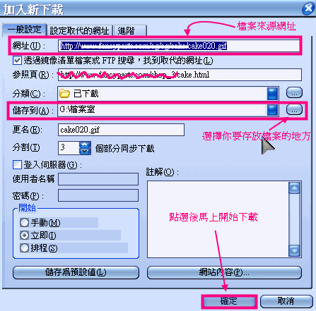 | 要以【手動】還是【立即下載】,之後再按確定。 |