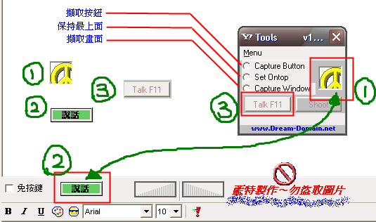 | 第二步:點選住(1)不放,拖曳到(2)後放開。放開後(3)也就是(Talk F11) |