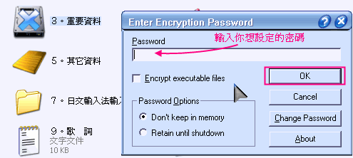料等...都可以加密,操作相當的簡單。(下載) |