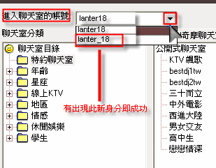 | 第七步:如圖那樣,就沒問題啦!可以選擇本尊或分身進入聊天室。若建立七個 |