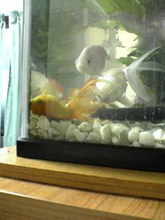 シーチキン「おやおやー?そこの白い金魚ちゃんとも仲良しなんですねー!」