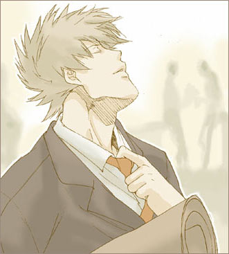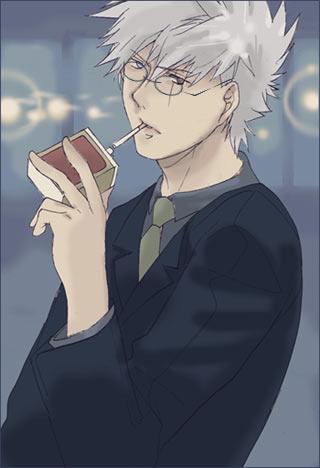 多寿さんのお題はすっごいツボでした! すっごいいいお題をいただけたな〜と思ってがんばってみたんですが難しくてもうこんなのしかできなかったです…!(泣) 全国のカッコイイカカシファン(?)の皆さんすいませ…修行の旅へモンドールにでも行ってきます 6月20日 ●カッコイイカカシ週間 さちこぉさんからのリクエスト「ネクタイをゆるめているスーツカカシ」 ![]() 「フー」とか言いながらタイを左右に動かしつつ緩めるカカシ。 企画部部長はたけカカシ27歳独身という設定で。 職種は今をときめくアパレル系で!アパレル会社の企画部部長! 6月19日 ●「この仕事が終わったら」 ともちさんからのリクエスト「ビジュアル系スーツカカシ」 ![]() 「送ってきますよ…。貴方の家まで」 言葉を続けるたびに口に咥えただけのタバコが上下に揺れる。 「そんな…いいですよ」 「なに言っているんですか…危ないですよ」 夜道の一人歩きなんて。 そう言って、カカシは両手で包み込むように灯した火に顔を近づける。 未成年の少女でもあるまいし、しかも自分と背丈もほとんど変わらない大の男相手に、何を言っているんだ、この人は、と文句をいいたかったのに、体はまったく逆の態度を示してしまう。カカシにそういわれただけで、体がかっと熱くなって、あっという間に顔がゆでだこのように真っ赤になってしまう。カカシのイルカの扱いとか、そういう、自分の態度が、どうしようもないもののように思えて、困る。救いはここが暗闇だということだけだ。 そんなことを一瞬のうちに考えて、恨むようにじっとカカシを見つめると、あ、と気がつく。 俯くと、カカシの白い輪郭がぼんやりと闇に浮かんで、きわだって見える。 前々から知っていたことだけど、こうして間近でみるのは初めてで、本当に綺麗な顔をしているんだな、と新鮮な感覚を覚える。 「ん。なんですか?」 「あ!いえ、なんでも!」 勢いよく吸い込むと、タバコの先が赤く燃え、ジジ…と小さな音がする。 それから、ふぅとため息をつくように吐き出された白煙は、灰色の廃墟の輪郭を溶かすように霧散してゆく。 「行きましょう。この仕事で終わりだ」 そう言って、イルカの肩を抱き、くるりと向きを逆にされあれよあれよという間に連れてゆかれる。 こっちだって、鍛えているのにな…。 軽々と肩を抱かれあちこちへひっぱりまわされている自分が、この人よりずいぶんと年下になったような、そんな自分を連れまわすこの人の飄々とした姿に憧れを抱くような、そんな気分にさせられて、それを悪く思えない自分に、軽い自己嫌悪を覚えながらイルカは黙ってカカシの後について行った。 送りオオカミにはならないカカシです。 過去絵日記(KK週間一週間目) 過去絵日記(KK週間二週間目) 過去絵日記(KK週間三週間目) 過去絵日記(KK週間四週間目) |