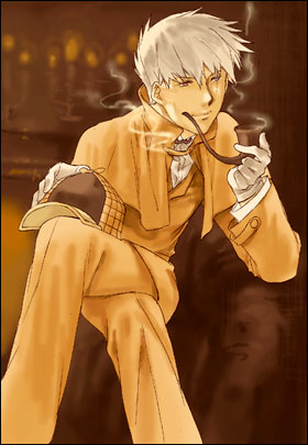 絵日記にて開催していましたカッコイイカカシ週間総集編… 7月8日 ●人気モデルの真実 自分kKな「モデルなカカシ」 ![]() 顎引いて、もっと右むいて、いいね…うん。 写真家の言葉に、すぐさま答えてみせる。充分どころか注文をはるかに超える表情を見せてくれる。これが彼の実力。 「あの子、いいねぇ…」 顎をさすりさすり、満足げなスポンサーの言葉に、周囲のスタッフもうんうんと頷く。 「本当、素敵よね、カカシ君!」 「若手のモデルの中でも群を抜いているものね…これから伸びて欲しいわよね」 「そうそう……でもねぇ〜…」 1人のスタッフが声をひそめて表情を曇らせると、残りのメンバーもさっと顔色を変えた。 「でも…?なんだ?」 スポンサーの男が首をかしげて、突然変わった現場の空気に、なにがあるのか尋ねた。 「…いや…その…」 「ねぇ」 気まずそうに、目配せし合うスタッフたち。 「なんだ?人気モデルのカカシ・ハタケなにかあるってのか…?」 …いいよ!OK!予想以上にいい出来だ。これで終わりにしよう。 写真家の言葉に張り詰めていた現場の空気が一気に緩む。 お疲れ様、カカシ! …お疲れ! 涼しげな表情のカカシが声もなく、すっと立ち上がった。 立ち上がると、上背があって肩幅が広いわりにひょろりとしているのが分かる。 彼は若手なのに、ベテランでも見せないような落ち着いた雰囲気をまとい、大物を思わせる、寡黙な男だ。 す… カカシが優雅な歩みで裏手に向かう。 「イルカさん!」 そのクールな表情が――――ふにゃりと崩れた。 「イルカさ〜ん!おにぎり!イルカさんのおにぎり食べたいです〜」 「はいはい、持って来てますからそんな大声で言わないでください」 ついたての裏に立っていた黒髪の男が抑揚のない声で答える。 クールビューティだった(はず)のカカシ・ハタケが、黒髪の男の首に両腕を回してくねくねと身体を揺らし、コドモみたいに甘えている。 スポンサーの口からぽろり、とタバコが落ちた。 背後でスタッフが顔に手をやり「あ〜」やっちゃったよという顔をしている。 「たかがおにぎりでそれだけ喜ぶのはあなたくらいですよ」 ―――黒髪の男は、カカシの豹変ぶりになにも動じていない。 「おいしいです〜!やっぱりイルカさんのおにぎりは世界一、いや宇宙一ですね! この間なんとかっていう本の、みっつお星さまマークがついてるお店連れて行かれましたけど、イルカさんのおにぎりの方が絶対おいしいですもん!」 「ミシュランの三つ星店でしょうそれは…貴方の舌はどうにかなってるんじゃないんですか?」 「あ、かつお梅!これ大好きです〜! でも、イルカさんが握ってくれたおにぎりだったら具はなんでもおいしいです! ね!明日も、明日も作ってきてください! 作って持ってきてくれたら今日よりもっとがんばっちゃいます!」 鼻の頭にごはんつぶをくっつけたまま、無邪気に笑うカカシに… 「はいはい…」 黒髪の男が苦笑する。 …コレが? コレガアノカカシハタケ? 「スポンサー?…だ、駄目だ、固まってる…」 「大丈夫、すぐに見慣れるって…毎回ああなんだから。 最初は驚くけどな〜、カカシ・ハタケの真実の姿」 お互いに顔を見合わせ、仕事とプライベートで120度変わるカカシの本当の姿を前に、「慣れって恐い」と思いつつ、明日のスケジュールを練るスタッフ達であった…。 ・・・・・・・・・・・・・・・・・・・・・・・・・・・・・・・・・ イルカはマネージャー。 7月7日 ●-Seven percent solution- こみかさんからのリクエスト「ホームズなカカシ先生」 ![]() 時は19世紀、場所はイギリス、ベーカー街221B。 私はワトソン。シャーロックのホームズの助手として、僭越ながら彼の事件を本にすることにした。 「書けないこと、いっぱいありますよねぇ…」 白い腕が、毛布を跳ね、ゆっくりと己の前髪をかきあげる。 ベッドの中から気だるい声をかけてきたホームズに、机に座ってメモを取っていた私は目を伏せた。 「たとえば―――貴方が重度のコカイン中毒者だとか、ですね」 「違いますよ」 ホームズは、いつもの皮肉っぽい笑みを浮かべつつ、枕もとの白く光る針に手を伸ばす。 目的の物を身体に入れると、「く」と、小さく声を洩らし、わずかに顔をしかめる。 これは彼が表情を崩す、数少ない瞬間。 ―――ため息がでる。 何度やめろといっても聞かないんだから…。身体を悪くさせるというのに。 ホームズがベッドから起き上がってきて、私の横に立った。 上半身裸のまま、肩を抱き、身体をすり寄せてくる。 彼の細くて長い指先が、ゆっくり、なぞるように、肩を撫でてくる。 完全に、そういう意図を持って―――ー。 「―――貴方が、性格が悪くてシニカルでおまけに厭世的で女嫌いで…、書けないことはたくさんありますよ」 「うわ、ヒドイ、ワトソン君。ふつう、そこまで言う?」 そう言いつつ、否定はしない。肩を震わせくつくつと笑う彼はどこまでも楽しそうだ。 私が疲れた顔を見せると、そっと耳