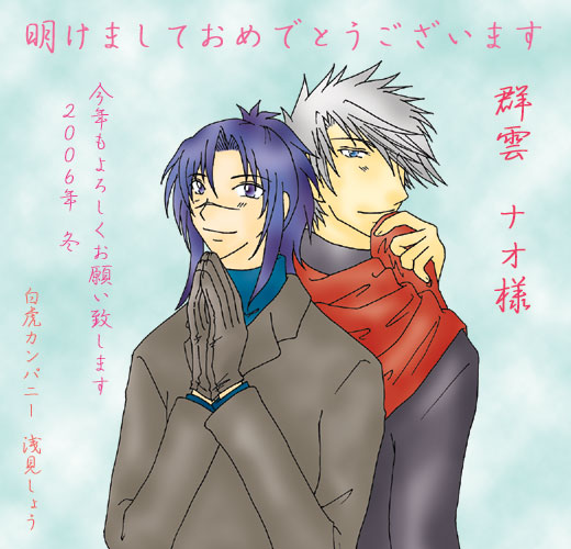 …そしてカカシがカッコいいです!ポーズも2枚目…!新年早々悩殺ですか…!?私にはこんなカッコいいしぐさのカカシは描けません。見習わないと…と、素敵なお年賀状ありがとうございましたv今年も何卒よろしくお願いします。