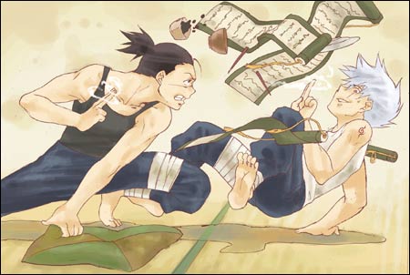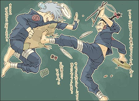 ラクガキと徒然日記 1月26日 忍び服ネタで恐縮ですが ![]() あんまり引っ張るものだから…(↑クリック) こんな絵ばっかり描いていると血管切れそうになります。 カカシ先生足が変だよ… 今日は。 せっかく描きあげた原稿の上にインクをぶちまけてしまい(泣) う…ああああああああ(誰か) 1月22日 お邪魔虫 ![]() ↑クリック! 全然関係ない話ですが私は二の腕フェチです。 二の腕の内側の柔らかいところが好きです描くのも見るのも(なんてマニアックな…) 友達と温泉に行ったとき触らせてもらって不気味がられました(当然だ) 前日の絵がなんか飛ばしすぎのような。 今日は更新できるかな?どうかな? この忙しいのになぜ辞めるかなぁ…(泣) お陰で休日出勤vv(がくり) 1月18日 この人相手だとついついムキになってしまう。 ![]() 喧嘩で忍術を使ってしまう駄目駄目な大人たち。 大人がふとした瞬間みせる子供みたいな仕草や表情に萌えてしまうのは私だけでしょうか。 この二人が喧嘩したらきっと先にキレるのはイルカ先生だろうと思うのですが。 でカカシ先生は反応鈍くてようやく応戦したかと思えばあっという間に勝ってしまうという…。哀中忍… もっと色々飛ばしたかった。枕とか箪笥とか(え) 忍術しょぼすぎ!ナニコノケムリ。 じ、時間をください… 珍しく更新早いですね。自分。や〜楽しっすこの二人描いてるだけで幸せだ… 裏絵リンク外しました。 次はもっと上手くなってから(←なにが) 1月17日 傷ネタ